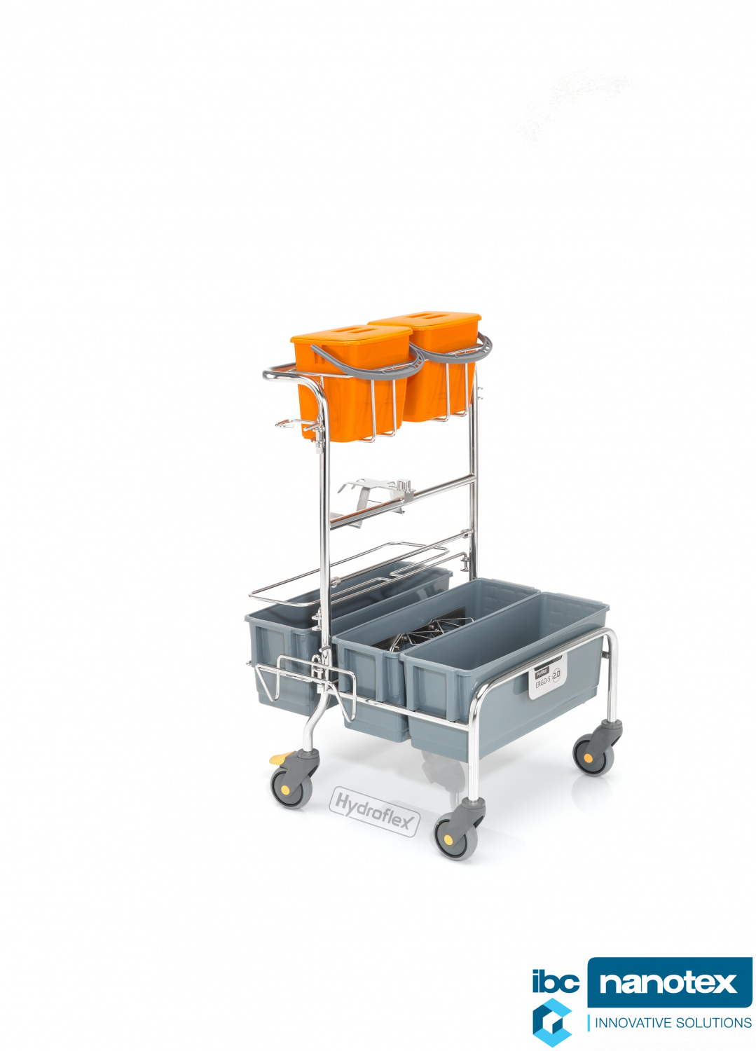 Kolica za čišćenje od poliranog inoxa i plastike ERGO 2.0 230 – Inovativan sistem druge generacije dizajniran za najviše higijenske standarde u čistim sobama. Zahvaljujući kombinaciji nerđajućeg čelika i plastičnih posuda, ova kolica omogućavaju izuzetnu manevrabilnost i sigurnost pri radu.